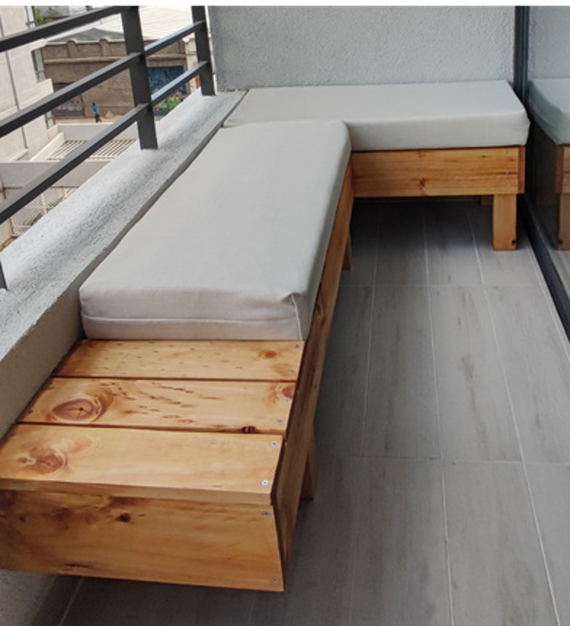 - Diseño: Modular esquinero en “L”, sin respaldo, tipo banco.