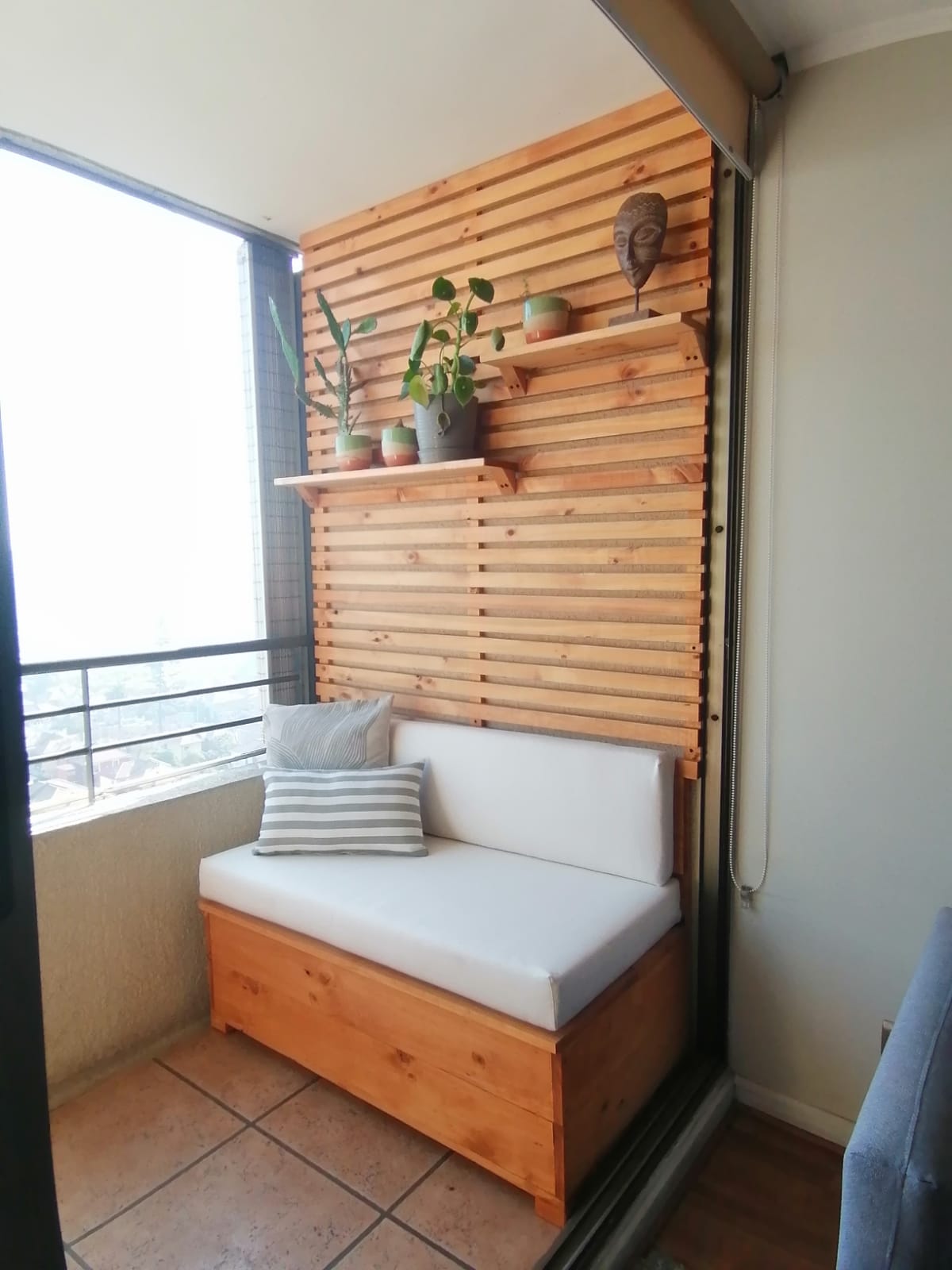 - Fabricado con listones de madera maciza tratada.