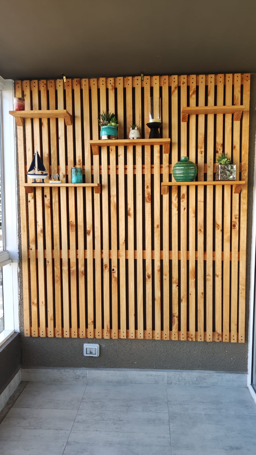 Nuestro Deck Vertical está construido con madera maciza tratada, seleccionada por su durabilidad y resistencia a las condiciones ambientales. El acabado en colores a elección (Llenar el formulario de Cotizar) de la madera resalta su veta y aporta una sensación cálida y luminosa, integrándose con facilidad en diversos estilos decorativos, desde lo rústico hasta lo moderno.
