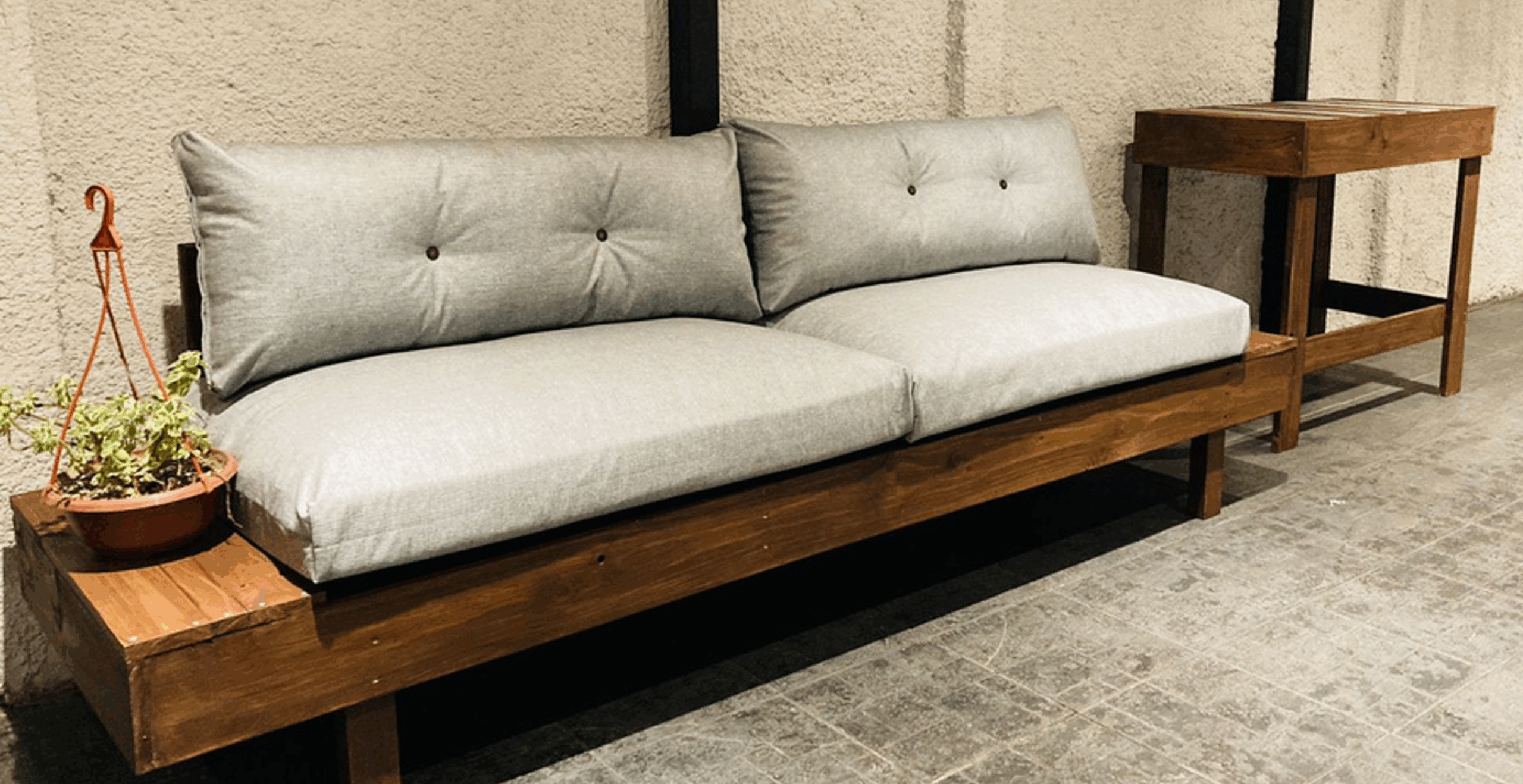 Crea un espacio de relax con estilo y funcionalidad con el Sofá Maynou, una pieza versátil y moderna ideal para tu terraza, balcón o jardín. Este sofá tipo banco no solo ofrece un asiento cómodo, sino que también integra soluciones inteligentes de espacio.