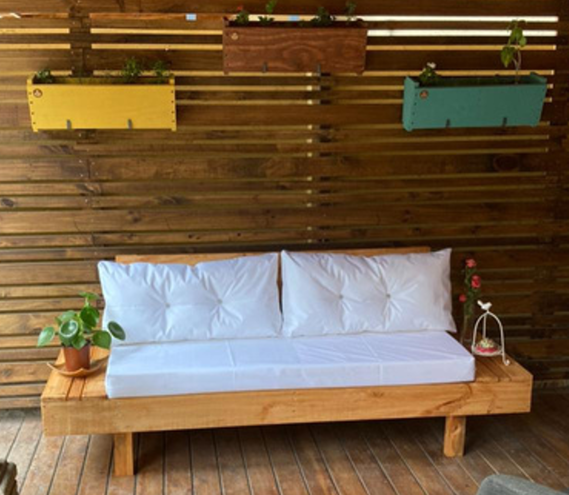 • 1 Módulo de 150x64cm de asiento, con cojinería de asiento y respaldo.